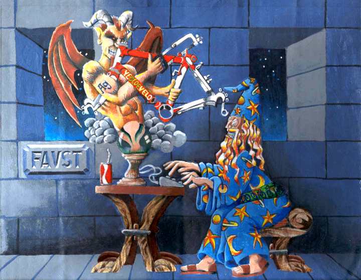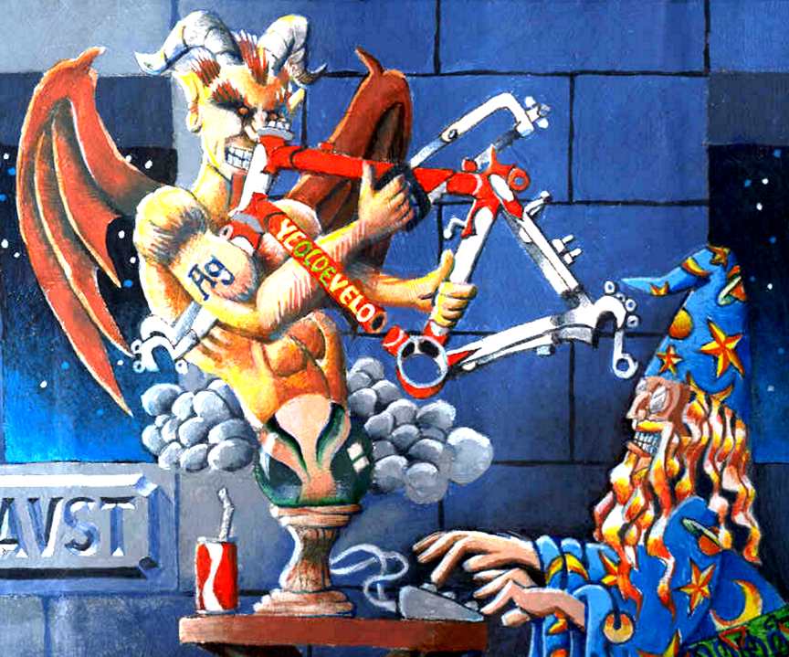 Click here to see an even larger image of the wizard and frame being hack-sawed