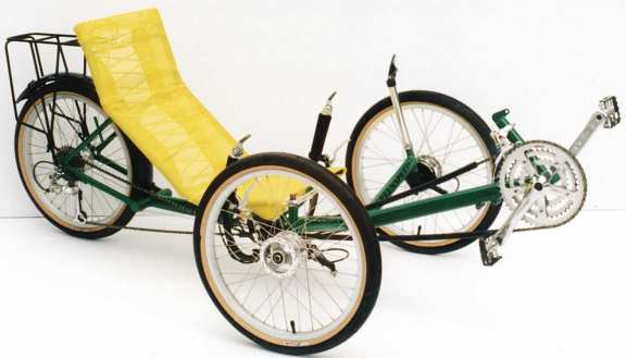 Hayes hydraulic disc brakes $900 Schlumpf "mountain-drive" two speed B/B $600 (extra wide gear range with no front derailleur) Shimano 105/XT 81 speed upgrade $300 Special Bunyip Recumbent Pannier Bags $250 Union Lighting set (battery) $250 Front mudguards $100 Cyclecomputer Sigma BC 800 (eight functions) $75 Ride On brake cables (Gore-tex lined low friction) $60 2nd mirror $30 Lightweight 20 x 1 1/8" wheels, (save 1kg) $200 Specifications subject to change without notice.
