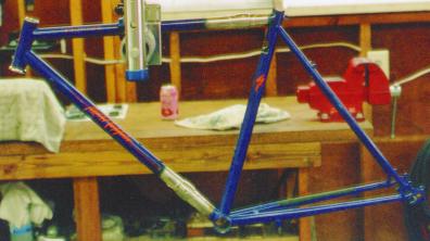 This frame will require repainting in the area around the BTCs. Frequently a different color is used to paint the section on each side of the BTCs and sometimes the seat tube as well. This partial paint job not only saves money by eliminating the need for a complete repaint, but it can also result in a sharp new look for the bike.