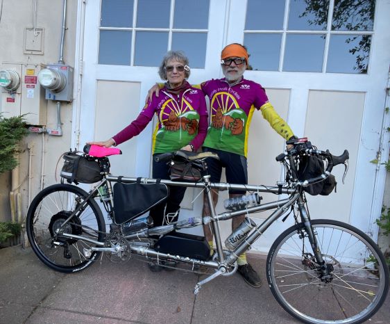 Since we are similar in leg length but a few inches discrepant in torso and arm length, we thought it would be feasible to design a frame that we could both ride either front or back. Rob agreed and produced a frame that accommodates us on either seat with the adaptation of a Look Ergostem in front, adjustable for both height and reach.