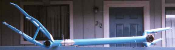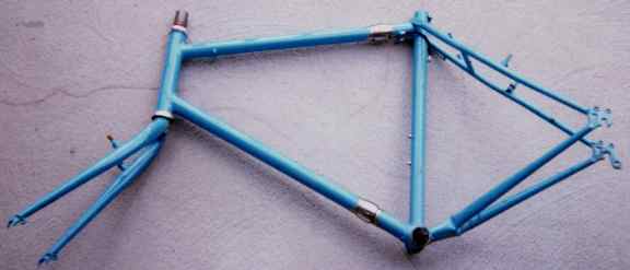 This bike was involved in a head-on collision with a Harley Davidson...the bike was well toasted, both front and back ends bent at really crazy angles. However, the central triangle containing the couplers was still true and undamaged. A new rear triangle was brazed on and the fork was replaced and now the bike is as good as new.