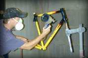 All our steel frames are powder coated to increase the durability of the frames. DeSalvo Cycles exclusively uses Spectrum Powder Works because of their versatility and attention to detail. The price includes a single color powder coat with painted on logos.
