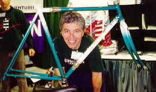 This morning I was tidying up my file on the bicycle, and stopped to read a promo sheet we picked up from you at the bike show in February of 1995 -- the one with all the testimonials. To be honest, I don't think we paid much attention to it back then. We were so attracted to that stunning red and white frame you displayed at the show, and so anxious to get a little more room for Pam in the Stoker position, that we were happy to start the project on that basis alone.