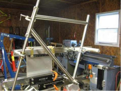 | THE FRAMES Although there has been an explosion in the development of new, high-tech materials in frame production over the last fifteen years, manufacturers of top-line steel bicycle tubing have not been standing still. On the contrary, there have been advancements in steel alloy technology that allow builders to produce frames with lower weight and greater durability than would have been imaginable just a few years ago. For each project, I choose tubing from Reynolds, True Temper and Columbus to meet the ride and performance characteristics requested by the customer. Joining these steel tubes is accomplished with three possible methods. The first way is silver brazing with beautiful investment cast lugs that come in many distinct styles or can be completely customized with a unique hand cut pattern. The second way is fillet brazed which is done lugless, the tubes being joined with a brass fillet that is blended to make the tubes appear to be flowing into one another. The K. Bedford Premier line of frames are available in either of these construction methods and are all done as one off custom models for the specific individual. The third way is Tig welding which is a very accurate, clean welding process that has a simple no frills look. This process is the basis for the new K. Bedford Tig Comp line of frames. These are very light frames offered in completely custom competition geometries in both Cyclocross and Road models. These frames are perfectly suited for the serious competitor or weekend warrior/club rider. |