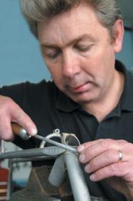 | Craftsmanship From the first stage of taking your order to the final clear lacquer paint finish - each member of the Mercian team is committed to service to you, as well as the production of a high quality product. We all have passion for the lightweight and sleek machines that Mercian Cycles produce and with over 200 years experience between the 9 team members - you can rely on their guidance, skill and expertise to produce the frame you really want. At Mercian's frame-building workshop there are no production lines. The method of building our frames has barely altered since the very beginning of Mercian Cycles. It really is a very traditional environment - looking back to the very best methods of hand-made quality. The frame order is passed to the framebuilder, who builds the frame from start to finish. With great skill and incredible patience he begins by preparing the lugs - drilling and filing, by hand, the cut-outs and intricate designs which make Mercian frames distinctive and beautiful. As Michael Kone (Bicycle Classics) was recently quoted, "That's the difference between buying craftsmanship and buying technology. Craftsmanship increases or at least maintains its value over the years, but technology gets severely devalued the minute it is sold, because everyone knows in a year it's going to be old news." |