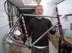 | Custom sizing Customers visiting our showroom to order a frame are sat upon a specially designed jig where skill, time and patience ensure a correct frame size and design - tailored to match the intended use of the cycle or frameset. The components to be used also play an important part of the frame order process, our framebuilders use the same model of component whilst building the frame to ensure that the finished frameset is built to suit you, your equipment and your cycling style. All of these minor details make sure that the complete cycle is the very best it can be. |