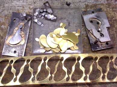 Head badge punch and die, head badges and scrap strip