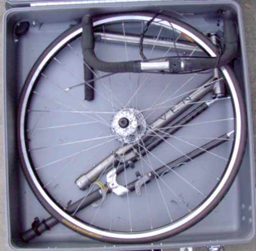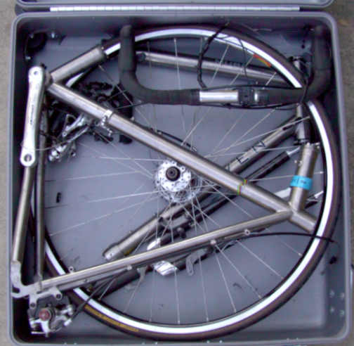 Packing sequence for a Seven Cycles road bike into a 10" hard