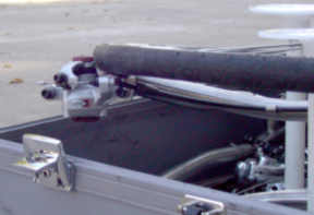 against the bottom of the case just in front of the headtube. The left drop fits