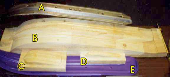 pieces). The original part, item A, is a steel ski that we mounted on a steel base